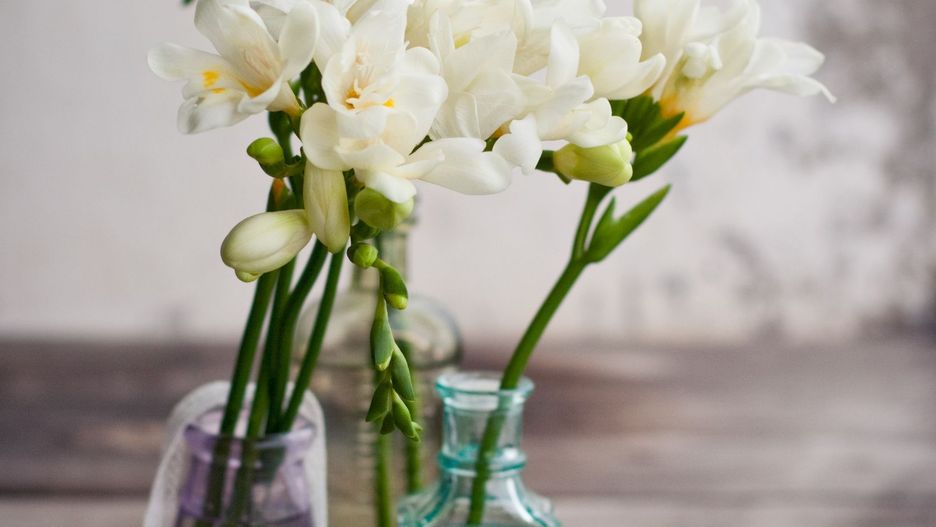 frezje - na dwie do trzech godzin wstawiamy do roztworu słabego alkoholu, potem możemy wsypać do naczynia 5-10 g cukru na litr wody,