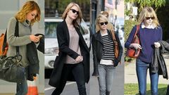 Aktorka konsekwentnie stawia na proste jeansowe rurki, najczęściej gładkie, oversizowe swetry i baletki lub wygodne botki na niskim obcasie. Niby nic wyszukanego, a jednak potrafi połączyć poszczególne elementy ze smakiem i zaprezentować je jak mało kto