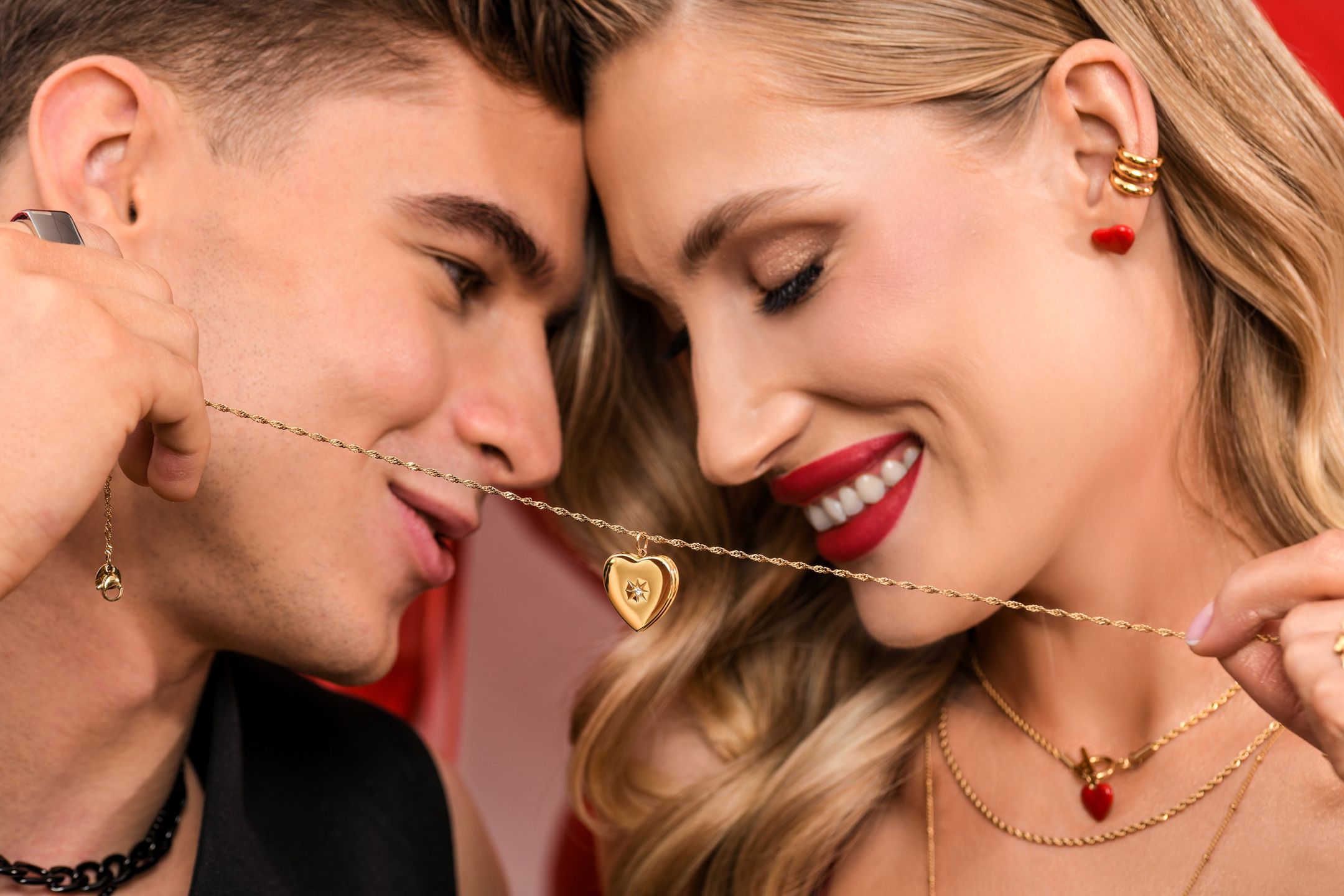 Wybrankę serca, kochającą duże formy z pewnością zachwycą także czerwone korale z okazałym sercem i złote kolczyki o dmuchanej strukturze. To więcej niż biżuteria, to manifest najsilniejszego z uczuć.