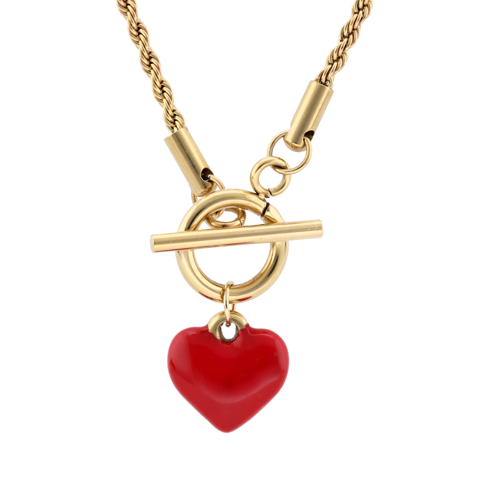 Długi naszyjnik z zawieszką w kształcie serca, kolczyki o tym samym motywie i pierścionek z intensywną czerwienią to trio, które zdaje się mówić o uczuciach głośno i bez wahania. Będzie idealnym prezentem dla wybranki serca na walentynkową randkę w blasku świec.