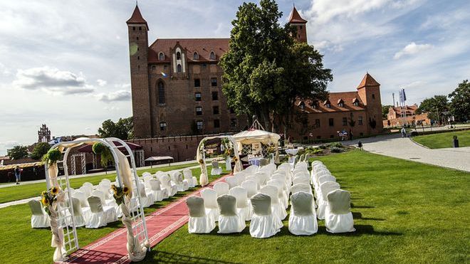 Pozostając w północnej części kraju, przenosimy się na Pomorze, gdzie nad lewym brzegiem Wisły góruje niezmiennie od XIII wieku imponująca krzyżacka forteca - Zamek Gniew. Dla pary szukającej niebanalnej oprawy swego wesela, Zamek Gniew szykuje szereg atrakcji, zaczynając od salwy armatniej na powitanie, poprzez pojedynki rycerskie, a na inscenizowanym porwaniu Panny Młodej kończąc. Będąc na szlaku zamków krzyżackich, zorganizowanie niezapomnianego przyjęcia oferuje także najsłynniejsza forteca – zamek w Malborku.