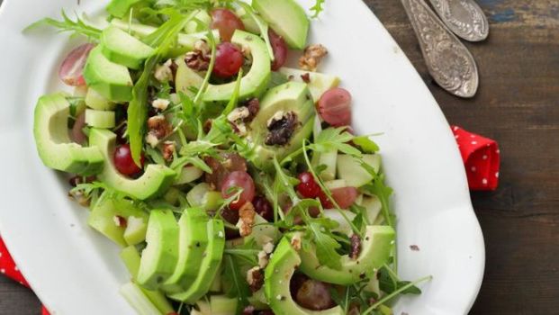 Połączenie awokado i selera to doskonała propozycja na lekki lunch lub kolację dla zakochanych. Zielony owoc, dzięki niskiej zawartości nasyconych kwasów tłuszczowych, a sporej dawce kwasów nienasyconych zadba o układ krążenia i odpowiedni przepływ krwi do poszczególnych części ciała. Z kolei seler zawiera androsteron, czyli substancję, która naśladuje feromony wytwarzane przez mężczyzn i pobudza kobiety. Produkt ten w dodatku uzupełni szereg niezbędnych witamin i składników mineralnych, m.in. potas, cynk, żelazo, magnez, wapń i fosfor, a także witaminy: A, E, C, PP i z grupy B. Nie bez znaczenia jest też dodatek cennej dla serca oliwy z oliwek, orzechów włoskich korzystnie wpływających na pracę mózgu czy rukoli, która blokuje wchłanianie szkodliwych substancji z pokarmów. Z podanych składników można przygotować 2 porcje sałatki.