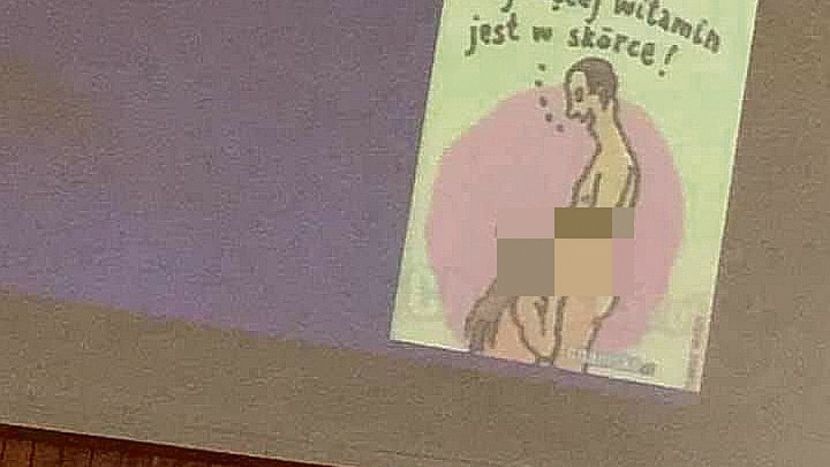 Wykładowca pokazał rysunek seksu oralnego. Teraz ułomnie się tłumaczy