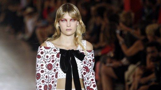 Zaskakującą tematykę wybrała Miuccia Prada. W swojej kolekcji połączyła nadruki drobnych kwiatów ułożonych równomiernie obok siebie z rysunkową wersją komiksowych samochodów. Całość robi niesamowite wrażenie, bo nadrukowane elementy pozostają w stylu retro, podobnie jak cała kolekcja nawiązująca do lat pięćdziesiątych. Wyblakła kolorystyka, zaznaczona talia, rozkloszowane doły sukienek i spódnic to cechy charakterystyczne włoskiej projektantki.